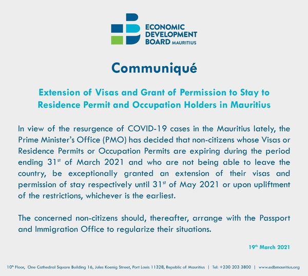 Selon le communiqué de l’EDB, cette prolongation concerne ainsi les visas et permis qui expirent au cours de la période se terminant au 31 mars 2021 et dont les détenteurs ne sont pas en mesure de quitter le pays.