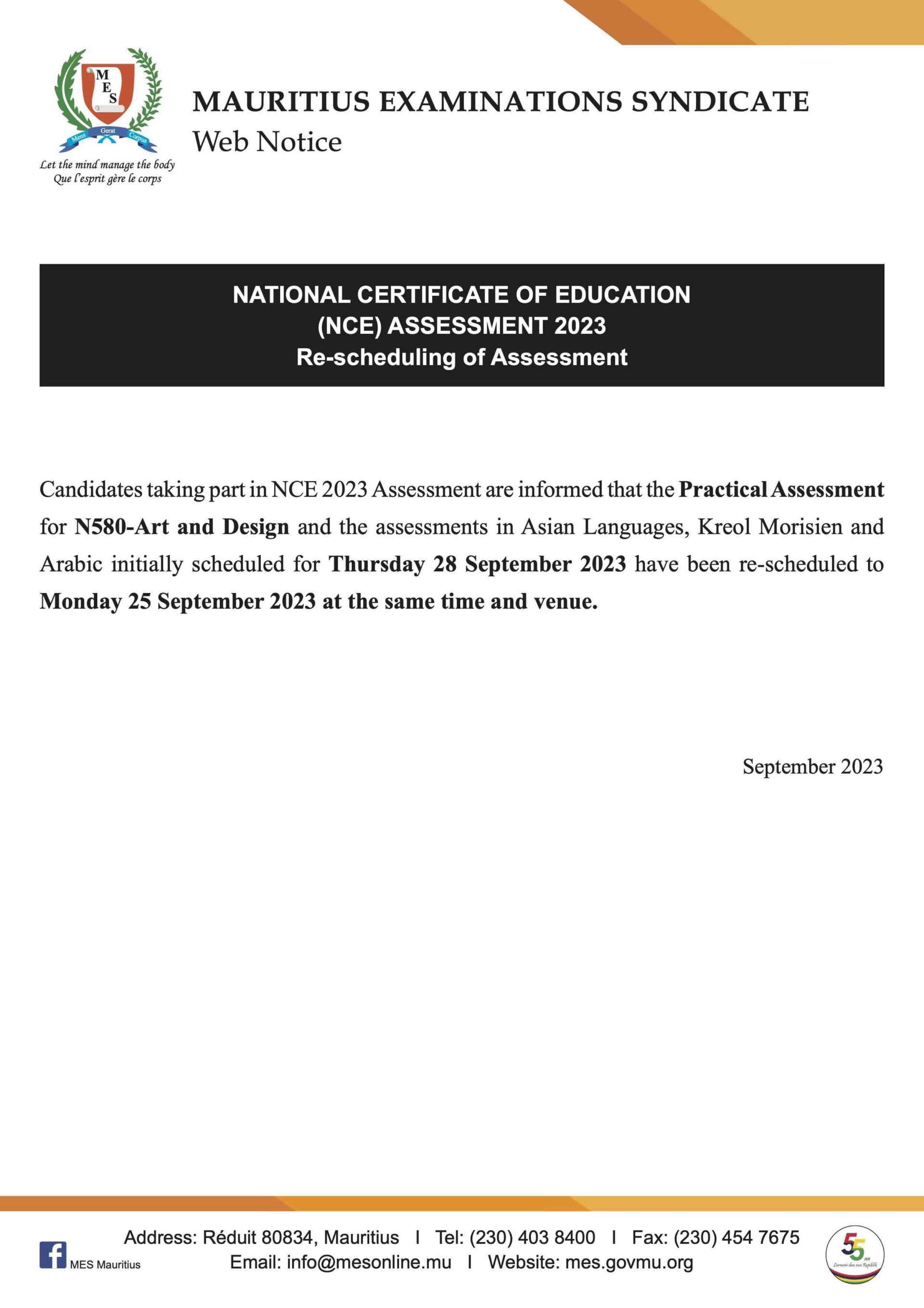 En effet, les examens pratiques du « N580-Art and Design » et ceux de l’« Asian Languages, Kreol Morisien and Arabic », initialement prévus pour le jeudi 28 septembre ont été avancés au lundi 25 septembre 2023, soit dans six jours.